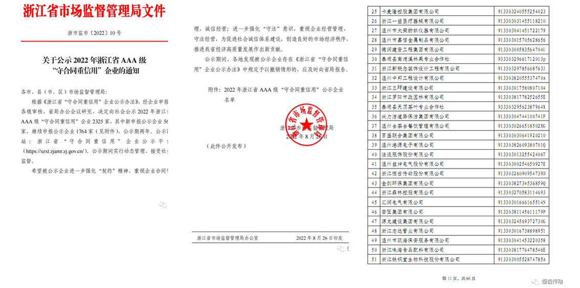 ]]>? ? ?浙江省“守合同重信用”企業(yè)公示,是工商行政管理機(jī)關(guān)、市場(chǎng)監(jiān)督管理機(jī)關(guān)依企業(yè)自愿申請(qǐng),對(duì)符合公示條件的企業(yè),將其合同信用等信息向全社會(huì)予以公示的行政指導(dǎo)行為,對(duì)推進(jìn)全省社會(huì)信用體系建設(shè),引導(dǎo)企業(yè)規(guī)范經(jīng)營(yíng)、誠(chéng)信經(jīng)營(yíng)具有重要意義。浙江恒齒傳動(dòng)股份有限公司擬評(píng)為2022年浙江省3A級(jí)“守合同重信用”企業(yè),恒齒傳動(dòng)在“守合同重信用”方面獲得又一次重要的認(rèn)可。
