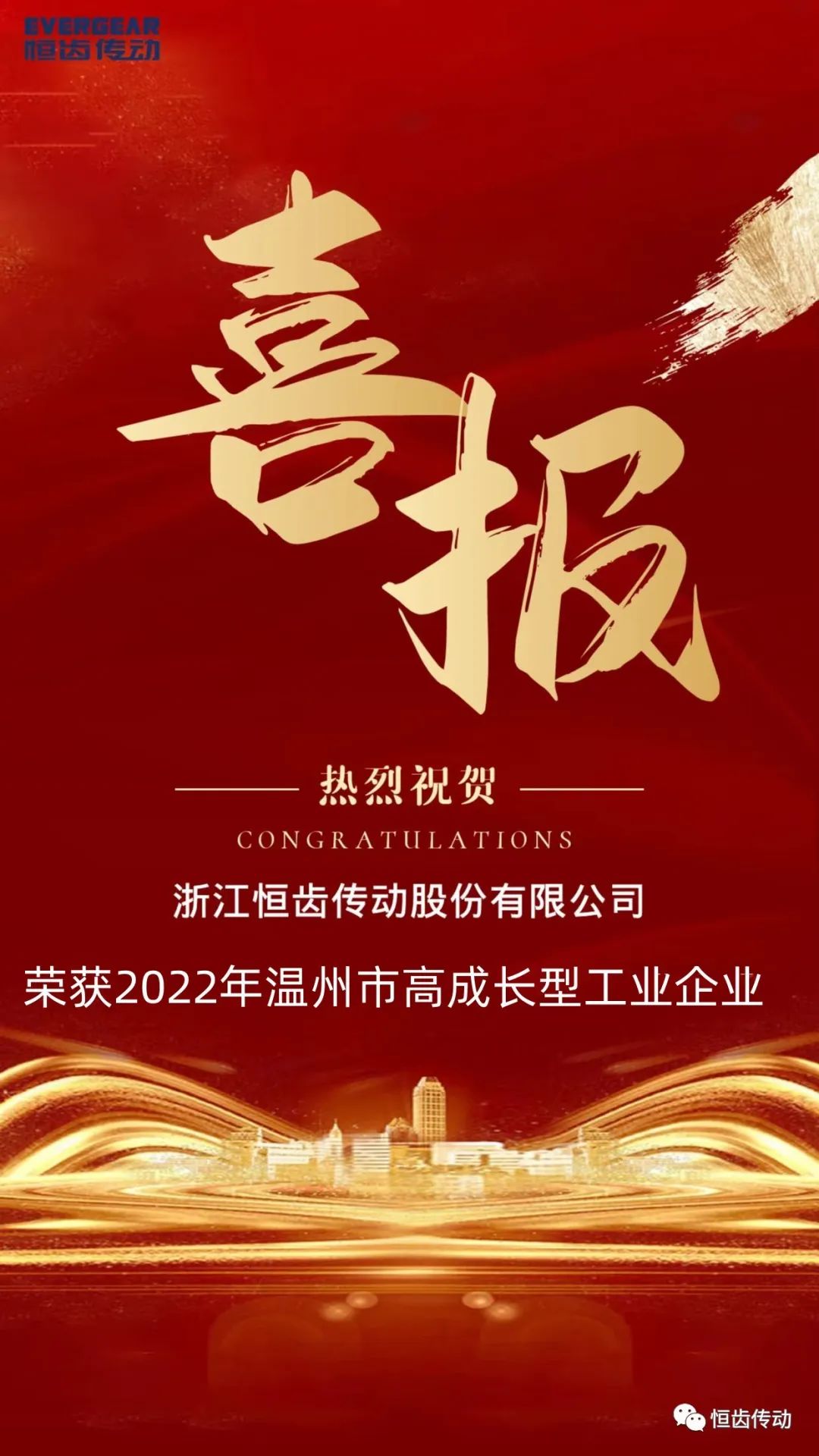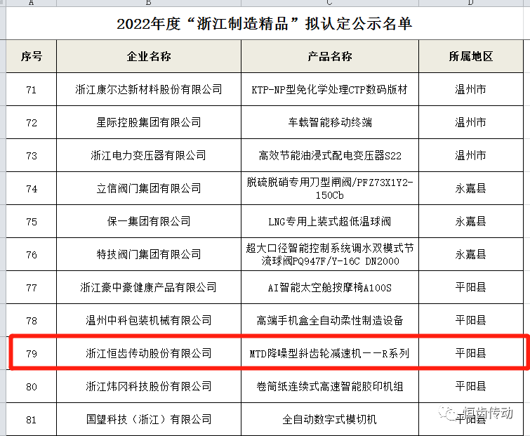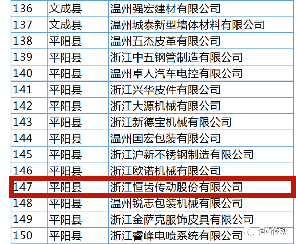 2022年12月19日,溫州市經(jīng)濟(jì)和信息化局發(fā)布了關(guān)于2022年度創(chuàng)新型中小企業(yè)的名單公示,浙江恒齒傳動(dòng)股份有限公司名列其中。